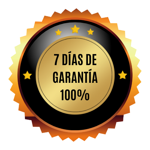 Si por alguna razón después de ver el ebook y de ponerlo a prueba, no quedas 100% satisfech@, tienes 7 días para escribirnos y solicitar una devolución total de tu dinero.